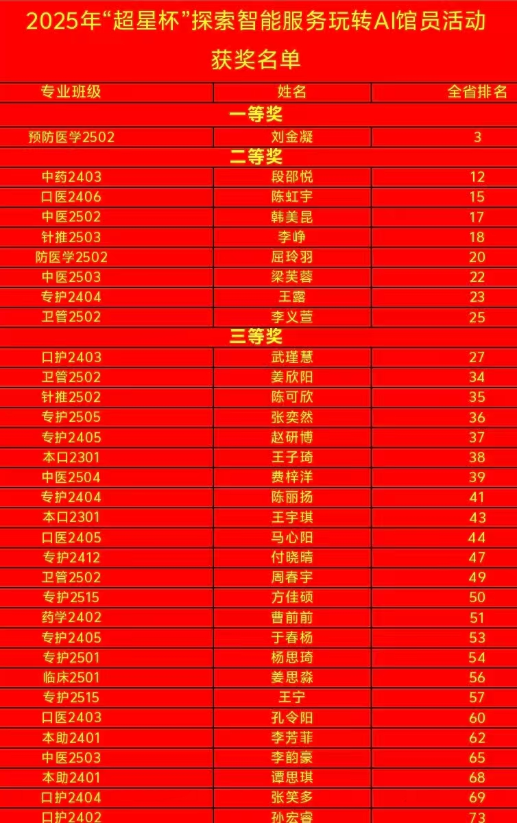 为积极响应国家关于推动智慧图书馆建设的号召,顺应数字化服务创新发展趋势,充分发挥人工智能技术对图书馆事业的赋能作用,11月7日至12月7日,我校图书馆组织在校师生参加了黑龙江省高等学校图书情报工作委员会联合黑龙江超星信息技术有限公司举办的2025年“超星杯”探索智能服务玩转AI馆员活动。
